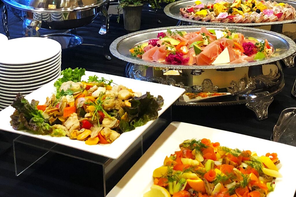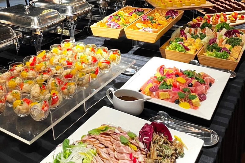 有名ホテルで腕を振るったシェフ陣による 和洋中問わずバラエティに富んだメニューをご提供いたしております。