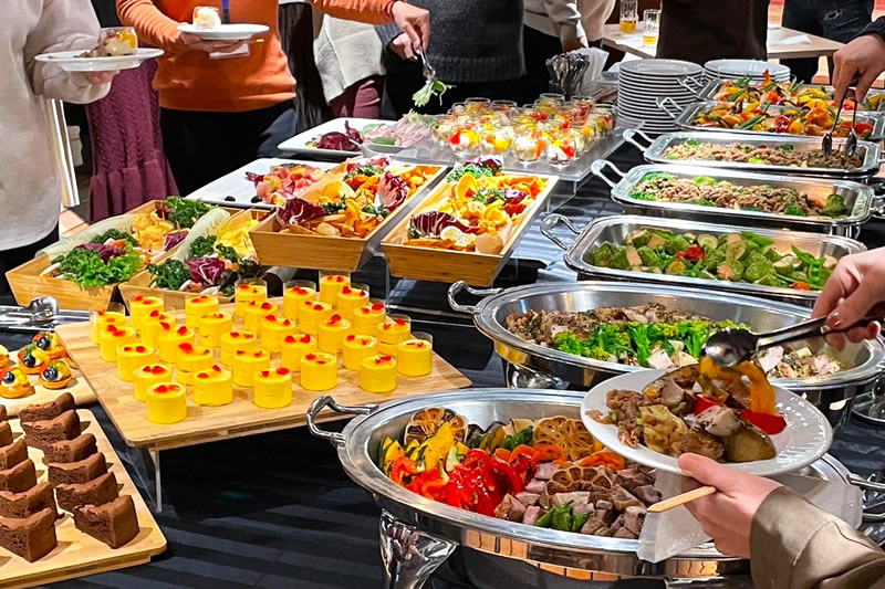 | 備品セット内容 | サービススタッフ、 テーブルクロス(ビュッフェ台、ドリンクコーナー)、 取り皿、グラス、カトラリー、紙おしぼり |